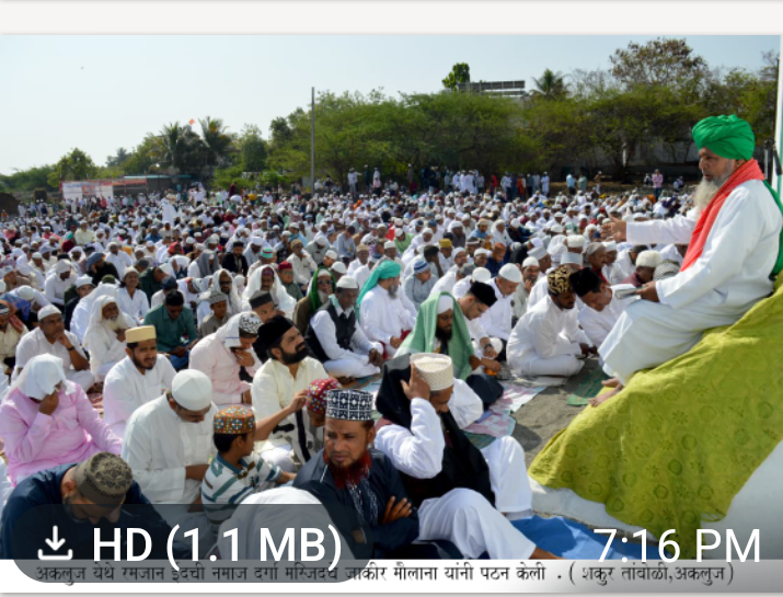 प्रारंभी हाफिज झाकीर हुसेन सहाब यांनी ईदची नमाज अदा करून प्रवचन केले तर खुत्बा जनाब रमजान मदारी यांनी दिला