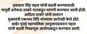 इकबाल सिंह चहल यांना निवडणूक आयोगाचा दणका, मुंबई महापालिकेच्या आयुक्त पदावरून चहल यांची उचलबांगडी.