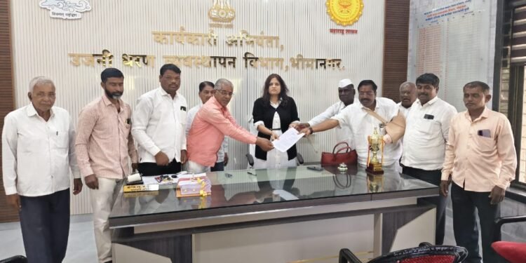 टेंभुर्णी  — उजनी जलाशयाच्या काठावरील धरणग्रस्त शेतकऱ्यांना भीमा उपसा सिंचन विभाग, भिमानगर यांच्याकडून अतिक्रमण केल्याच्या नोटिसा मिळाल्याने परिसरात खळबळ उडाली असून शेतकऱ्यांमध्ये भीतीचे वातावरण निर्माण झाले आहे. या पार्श्वभूमीवर आज उजनी धरणग्रस्त संघर्ष समिती (करमाळा व इंदापूर तालुका) यांच्या वतीने भिमानगर (ता. माढा) येथील भीमा उपसा सिंचन विभागाच्या कार्यकारी अभियंता सौ. सुचिता डुबरे यांची समक्ष भेट घेऊन सविस्तर चर्चा करण्यात आली.