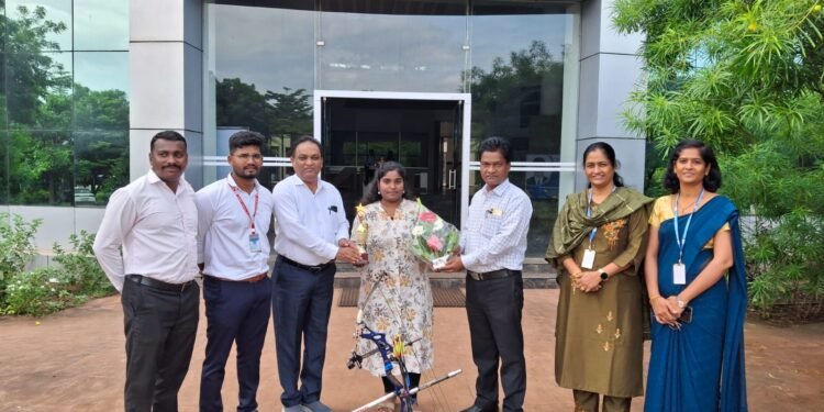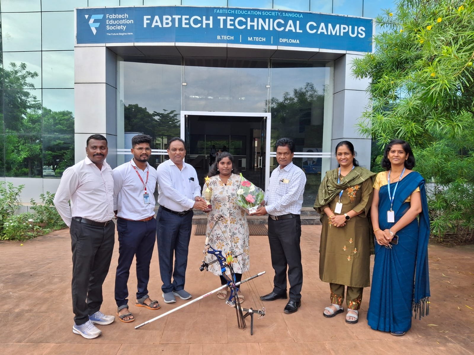 सांगोला – लोणेरे (जि.रायगड) येथे तिरंदाज चाचणी स्पर्धा आयोजित करण्यात आल्या होत्या. या स्पर्धेत फॅबटेक टेक्निकल कॅम्पस कॉलेज ऑफ इंजिनिअरिंग अँड रिसर्च, सांगोला येथील प्रथम वर्ष मध्ये शिक्षण घेत असलेली विद्यार्थिनी प्राजक्ता जाधव हिची दि.२४ ते ३१ ऑक्टोबर रोजी पंजाब येथील गुरूकाशी विद्यापीठ भंटिडा येथे होणा-या आंतर विद्यापीठ तिरंदाजी स्पर्धेसाठी निवड झाली आहे.