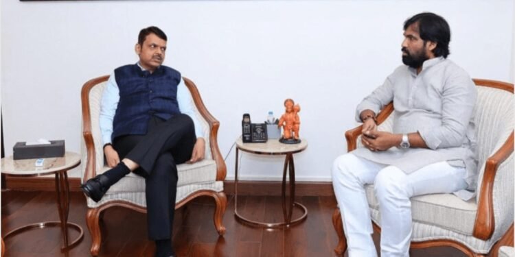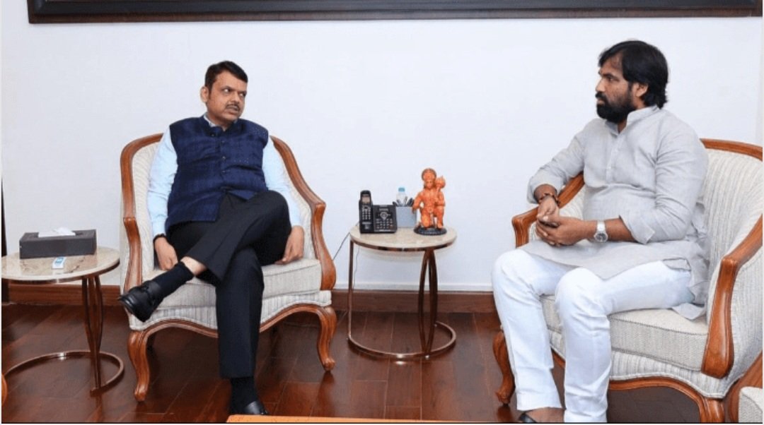 माळशिरस तालुक्यातील शेतकऱ्यांना मदत मिळावी याबाबत मुख्यमंत्री देवेंद्र फडणवीस यांच्याबरोबर चर्चा करताना माजी आमदार रामभाऊ सातपुते.