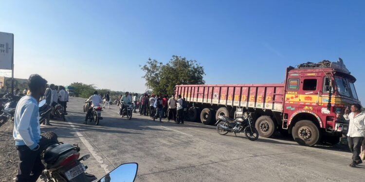 वाघाई टेकडी जवळ रस्त्याच्या बाजूला उभ्या असलेल्या बीकेसी कंपनीच्या ट्रक क्रमांक AP39,ux,6876 मोटर सायकल क्रमांक.m h 26,f 4238 ची जोरदार धडक बसली.