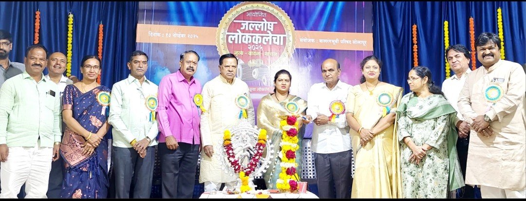 सोलापूर – जिल्ह्यातील बालकलाकारांमध्ये लोककलेचा प्रसार व्हावा या उदात्त हेतूने बालरंगभूमी परिषदेतर्फे एकदिवसीय “जल्लोष लोककलेचा” हा भव्य लोककला महोत्सव उत्साहात साजरा करण्यात आला. ६ ते १५ वयोगटातील बालकलाकारांना त्यांच्या कलागुणांचे प्रदर्शन करण्यासाठी हे हक्काचे व्यासपीठ मिळाले. हरिभाई देवकरण प्रशालेच्या मुळे सभागृहात दीपप्रज्वलन आणि नटराजाच्या मूर्तीचे पूजन करून उद्घाटन करण्यात आले