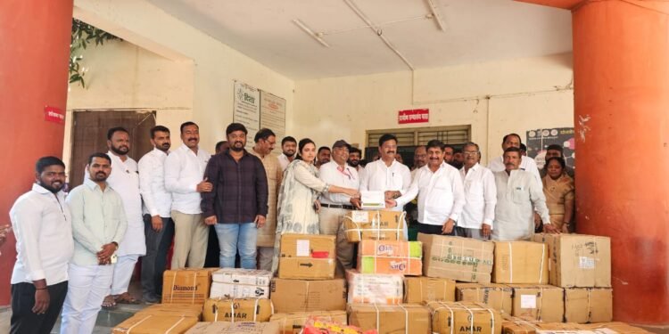 टेंभुर्णी- राष्ट्रवादी युवक काँग्रेस (शरदचंद्र पवार) पक्षाचे जिल्हाध्यक्ष सुरज देशमुख यांच्या वतीने माढा तालुक्यातील पूरग्रस्त नागरिकांसाठी चार महिने पुरतील व 20 हजारांहून अधिक लोकांना उपयोगी ठरतील इतका मोफत औषध पुरवठा आज खासदार धैर्यशील मोहिते-पाटील व आमदार अभिजीत पाटील यांच्या उपस्थितीत माढा ग्रामीण रुग्णालय येथे तालुका आरोग्य अधिकारी डाॅ.आरती पाटणे यांच्याकडे सुपूर्द करण्यात आला. पूरग्रस्त भागातील लोकांना अनेक मदतीचा ओघ असताना पुराच्या पाण्यामुळे पूरग्रस्त गावातील लोकांचे आरोग्य धोक्यात येऊ शकते या गोष्टीची जाणीव ठेवून 20 हजारांहून अधिक नागरिकांना पुरतील इतका औषध साठा देण्यात आला.
