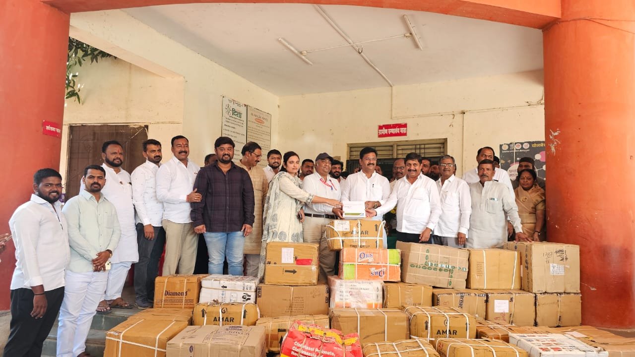 सुरज देशमुख म्हणाले की,खासदार धैर्यशील मोहिते-पाटील व आमदार अभिजीत पाटील यांनी पुर परिस्थिती नियंत्रणात येईपर्यंत मदतीचा ओघ कायम ठेवला. आपण ही समाजाचे देणे लागतो या भावनेतून पुराच्या पाण्यामुळे या भागातील नागरिकांचे आरोग्य धोक्यात येणार आहे हे पाहून तालुक्यातील पूरग्रस्त गावातील 20 हजारांहून लोकांना तीन-चार महिने पुरतील इतका मोफत औषध साठा आज तालुका आरोग्य अधिकारी यांच्याकडे सुपूर्द केला आहे. भविष्यात ही कोणत्याही नैसर्गिक संकटात आपण लोकांसाठी मदतीची भावना ठेवून सेवा करणार आहे.