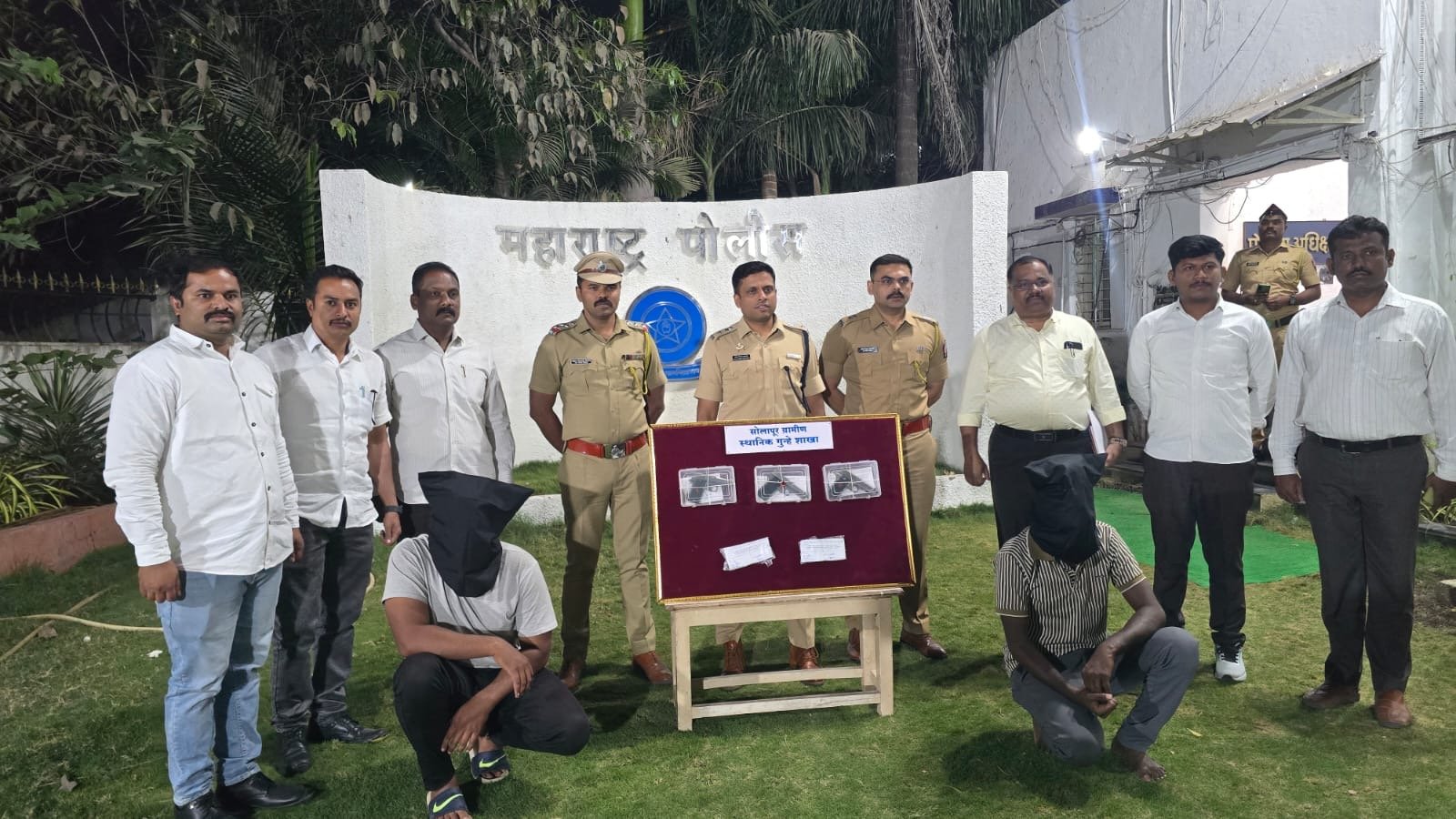 याबाबत अधिक माहिती अशी की, सपोनि/विशाल वायकर व त्यांच्या तपास पथकाने खात्रीशीर माहिती काढली की, विकास कैलास वजाळे रा. अण्णाभाऊ साठे नगर परिते ता. माढा हा त्याचेकडील पिस्टल व राउंड घेवून एच पी पेट्रोल पंप परिते येथे विक्री साठी येणार आहे. त्याप्रमाणे परिते ते टेंभुर्णी जाणारे रोड लगत सषंयीत इसम दिसून आल्याने त्यास पथकाने ताब्यात घेतले. चौकषी केली असता विकास कैलास वजाळे वय 31 वर्षे, रा. अण्णाभाऊ साठे नगर परिते ता. माढा जि. सोलापूर असे नाव असल्याचे सांगितले. सदर इसमाची झडती घेतली असता त्याचे कमरेला खोवलेले 1 देशी बनावटी पिस्टल मॅगझाीनसह व 1 जिवंत काडतुस त्याचे ताब्यात मिळुन आली. आरोपीकडे अधीक तपास करता केल्यानंतर रज्जीत उर्फ गोलू रा. धुळे याचे कडुन विक्री करण्याकरीता 4 देशी बनावटीचे पिस्टल व राउंड काही दिवसापुर्वी आणले असल्याची माहिती समजून आली. आरोपी विकास वजाळे याचे घराची झडती घेतली असता घरझडतीत 1 पिस्टल व 4 राउंड मिळून आले. आरोपी विकास वजाळे याचेकडे अधिक तपास करत असताना त्याने यापूर्वी अक्षय अशोक धोत्रे वय 31 रा. सुमित हॉटेलच्या पाठीमागे टेंभुर्णी तालुका माढा यास आणखी 1 देशी बनावट पिस्टल विक्री केल्याची माहिती दिली. त्यावरून 3 रे पिस्टल देखील जप्त करण्यात आले. या कारवाईत एकुण 03 देशी बनावट पिस्टल व 5 राउंड असा एकूण 1,71,000/- रू किंमतीचा मुद्देमाल मिळाला. तसेच त्याचेकडील चौथे पिस्टल हे राम आनंता कांबळे, रा. टेंभूर्णी यास विक्री केल्याचे निश्पन्न आहे. या आरोपी विरुद्ध टेंभुर्णी पोलीस ठाणे गुरनं 69/2026 भारतीय शस्त्र अधीनियम 1959 चे कलम 3,7,25 प्रमाणे गुन्हा दाखल करण्यात आला आहे. या गुन्ह्याचा पुढील तपास सपोनि/विशाल वायकर नेम. स्थानिक गुन्हे शाखा, सोलापूर हे करीत आहे.