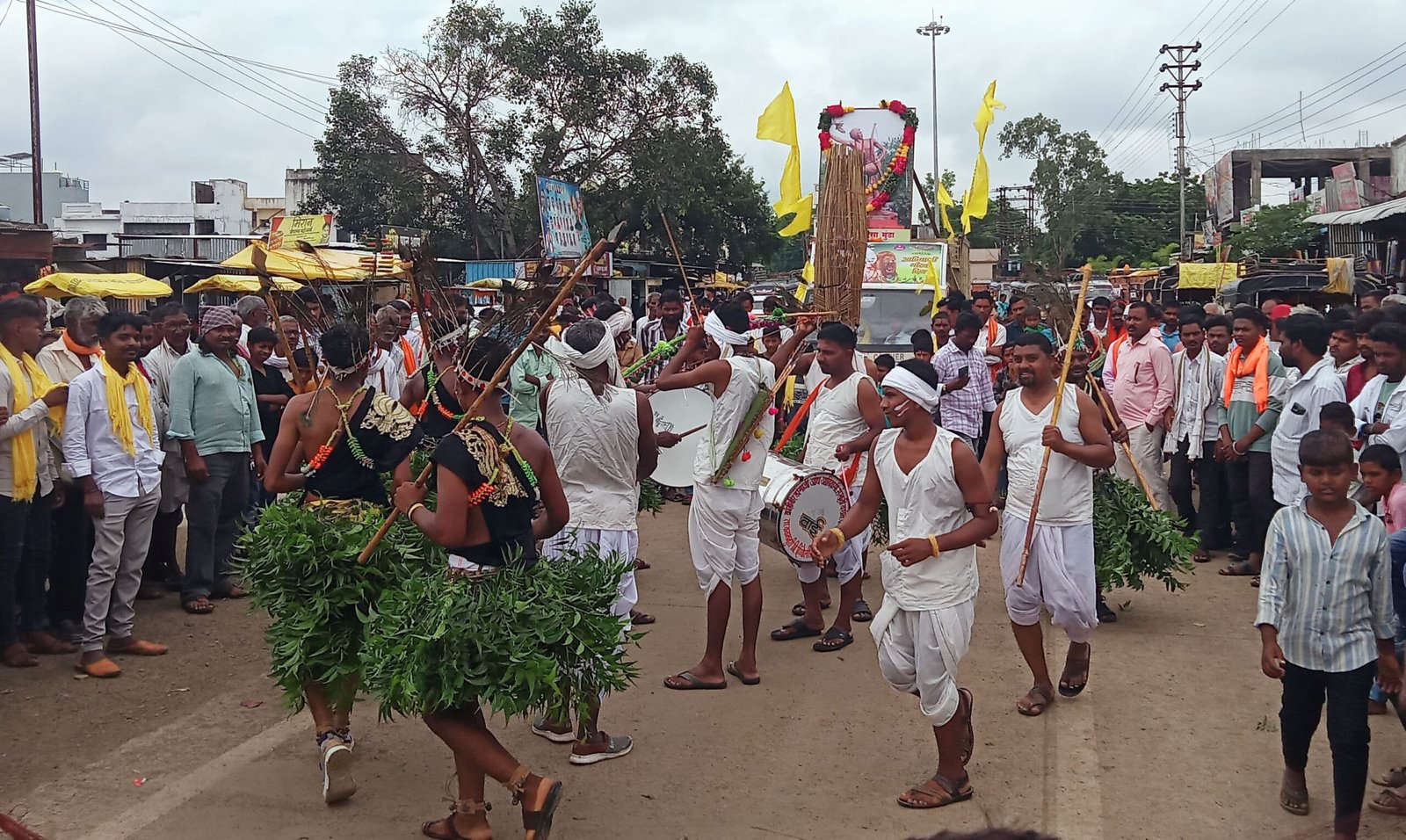 जुन्या बसस्थानकापर्यंत शोभायात्रा काढण्यात आली. यावेळी आदिवासी समाजाची ओळख असलेल ढेमसा नृत्यसह पारंपरिक पेहराव आकर्षणाचे केंद्र होते . येथील जिल्हा परिषद शाळेत आदिवासी दिनाचा समारोप कार्यक्रम झाला. अध्यक्षस्थानी स्वातंत्र्य सैनिक पुंडलिकराव भिसे होते.प्रमुख पाहुणे म्हणून शिवसेनेचे जिल्हाप्रमुख विवेक देशमुख, माजी जिल्हा परिषद सदस्य संभाजी लांडगे, आदिवासी पॅंथर संघटनेचे धनराज सोनटक्के, प्रा.के.के. वानोळे, माजी उपसभापती मनोहर माहुरे हे होते. यावेळी निसर्गपूजक समाजाची ओळख जपणाऱ्या महिलांचा रोपटे देऊन सत्कार करण्यात आला.