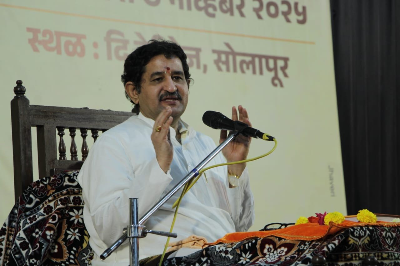 सोलापूर – कर्तुत्व हे केवळ स्वीकारातून नव्हे तर त्यागाने सिद्ध होते. कर्तुत्वाशिवाय मनुष्यावर भगवंताची कृपा होणे अशक्य आहे, असे प्रतिपादन ज्ञानेश्वरीचे गाढे अभ्यासक ह. भ. प. चैतन्य महाराज देगलूरकर यांनी केले. विकास सहकारी बँकेतर्फे हेरिटेज लॉन्स येथे आयोजित तीन दिवसीय ‘वाग्यज्ञ’ च्या तिसऱ्या आणि अखेरच्या दिवशी शुक्रवारी ह.भ.प. देगलूरकर महाराजांनी मार्गदर्शन केले.