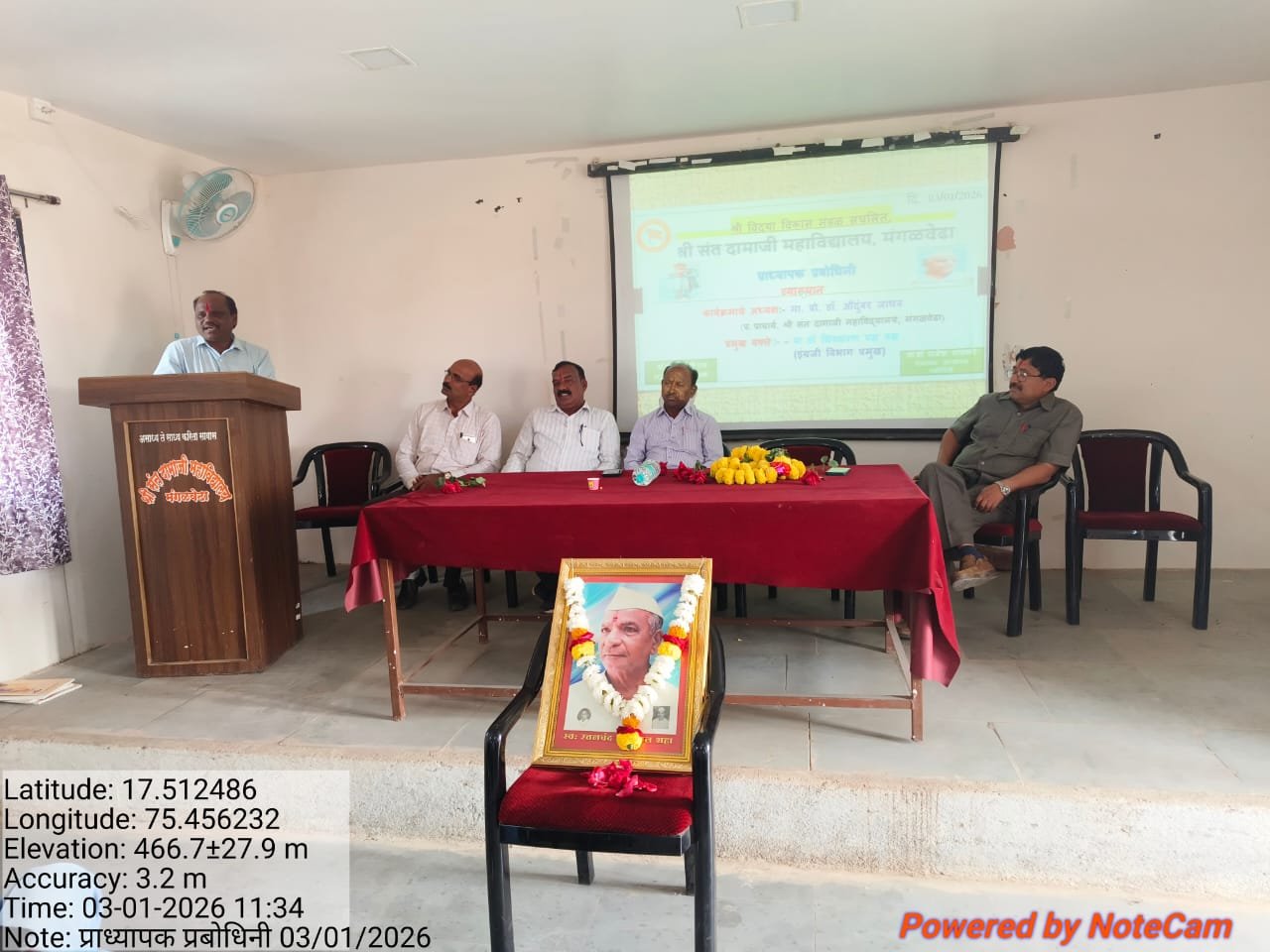 ओळी – श्री संत दामाजी महाविदयालयामध्ये प्राध्यापक प्रबोधिनीमध्ये मार्गदर्शन करताना डॉ.संजय शिवशरण व उपस्थित मान्यवर