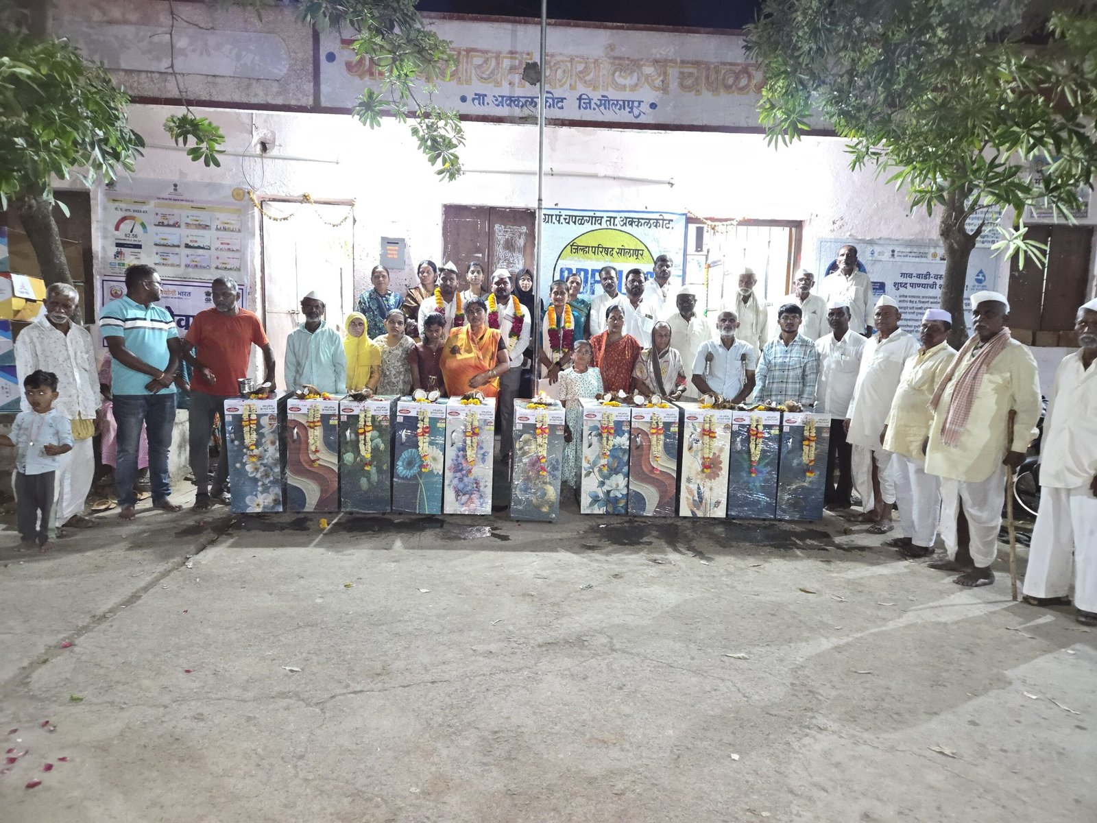 चपळगांवच्या सरपंच वर्षा भंडारकवठे यांनी झालेल्या कार्यक्रमात महिला ग्रा.पं.सदस्यांसह बसवराज म्हेत्रे,ऐश्वर्या हरकुड,सुनंदा हलसगे,भुताळी आगावणे, अभिषेक बिराजदार,योगीराज घोगरे, भुमिका गजधाने,महेश स्वामी,रेशमा शेख,भाग्यश्री पाटील या दिव्यांग लाभार्थ्यांना स्वहस्ताने पेढा भरवला.यावेळी दिव्यांगांचा ऊर भरून आला.