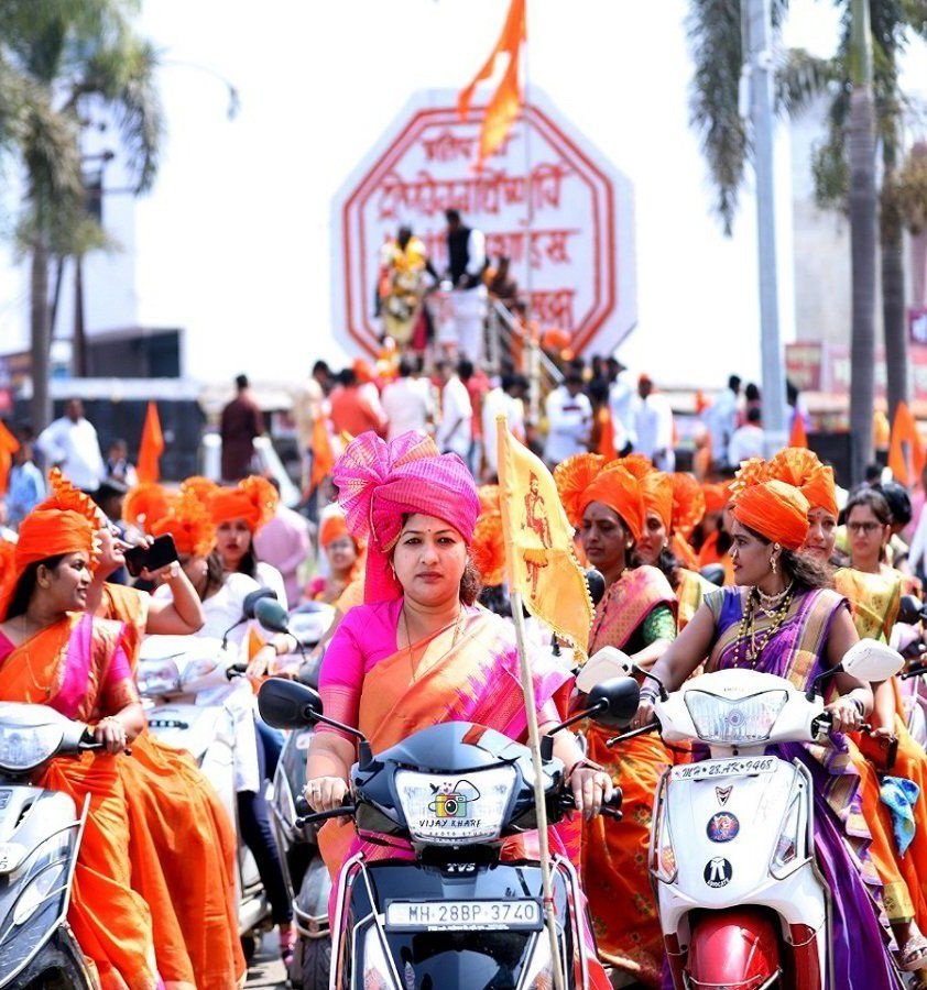 पारंपारिक वेशभूषा आणि भगवा माहोल