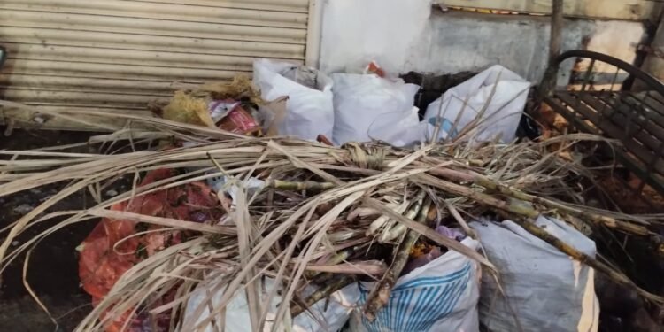 नांदेड – महानगरपालिका अंतर्गत सिडको येथील झोन क्रमांक ६ मधील हडको बस स्टँड येतील पूर्ण गल्लीचा घाण कचरा रोडवर टाकला जातो आणि तो मनापाचे स्वच्छता कर्मचारी १० ते ११ वाजता येऊन तो कचरा भरून येत असतात पण आज चक्क त्यांनी तो कचरा पोत्यात भरून एका दुकानासमोर चक्क थप्पी लावली आहे त्यातून घाण सर्वेकडे पसरत आहे. याकडे सहाय्यक आयुक्त मिर्झा बेग व स्वच्छता निरीक्षक रुपेश सरोदे यांचे दुर्लक्ष आहे.