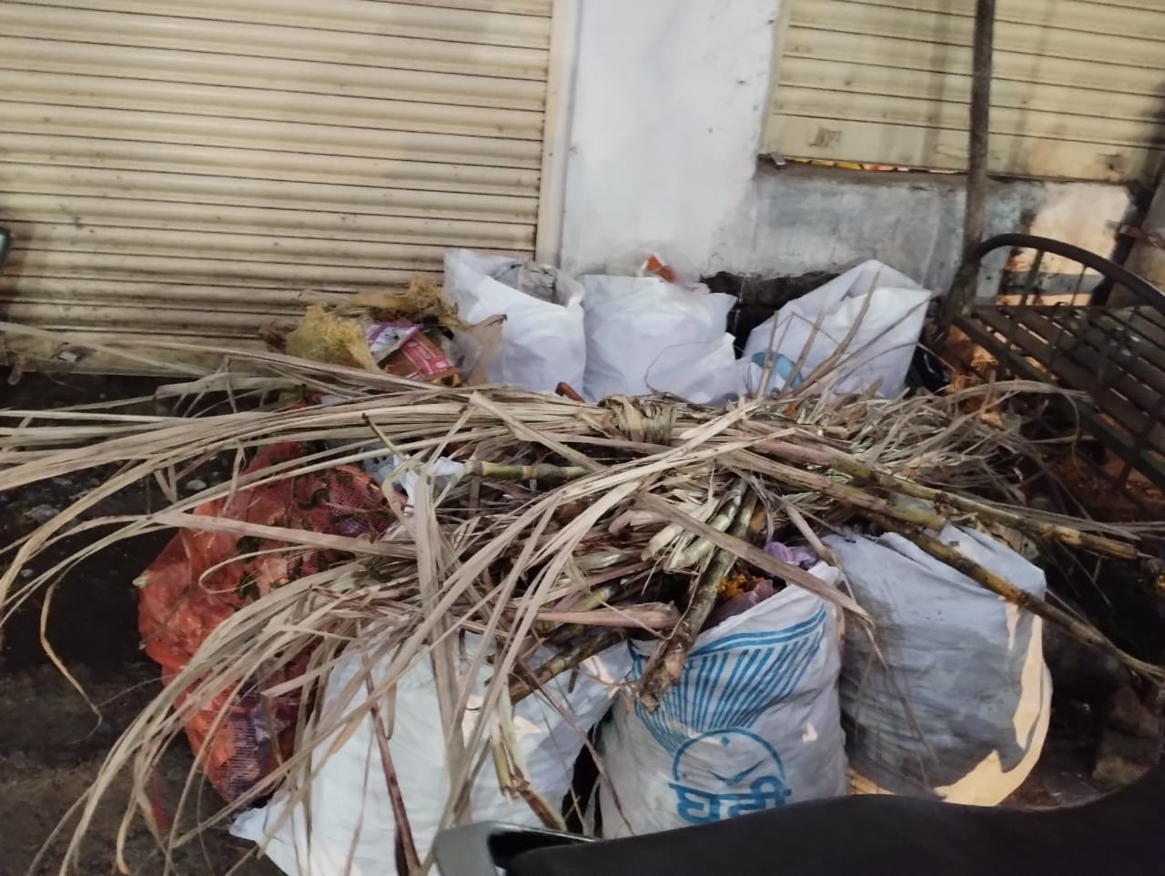 नांदेड – महानगरपालिका अंतर्गत सिडको येथील झोन क्रमांक ६ मधील हडको बस स्टँड येतील पूर्ण गल्लीचा घाण कचरा रोडवर टाकला जातो आणि तो मनापाचे स्वच्छता कर्मचारी १० ते ११ वाजता येऊन तो कचरा भरून येत असतात पण आज चक्क त्यांनी तो कचरा पोत्यात भरून एका दुकानासमोर चक्क थप्पी लावली आहे त्यातून घाण सर्वेकडे पसरत आहे. याकडे सहाय्यक आयुक्त मिर्झा बेग व स्वच्छता निरीक्षक रुपेश सरोदे यांचे दुर्लक्ष आहे.