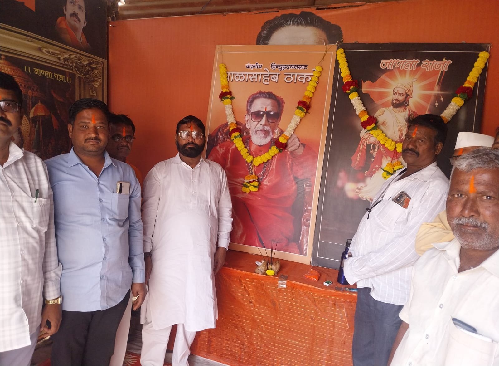 पिलीव येथे हिन्दुहदयसम्राट बाळासाहेब ठाकरे यांना अभिवादन करताना अशोक घोंगडे ,संजय रोकडे ,