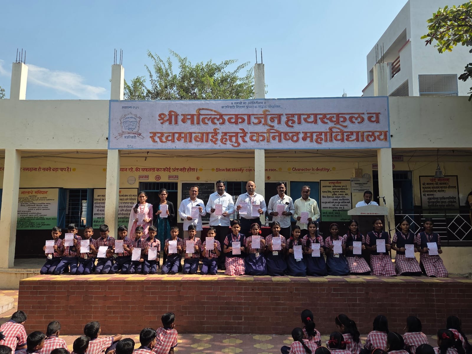 यावेळी पोस्ट मास्तर रमाकांत जाधव, अक्षय कुलकर्णी, वैभव कोळी, सचिन टिके,प्रणाली जाधव ,ऐश्वर्या गावडे या पोस्ट कर्मचाऱ्यांचा शाल व बुके देऊन सत्कार करण्यात आला.याप्रसंगी मार्गदर्शक धरेप्पा हत्तुरे,प्रभारी मुख्याध्यापक रमेश दिंडोरे,भारत राऊत,अण्णाराया तुप्पद,अनिलकुमार गावडे व शिक्षक-शिक्षकेतर कर्मचारी व विद्यार्थी उपस्थित होते.