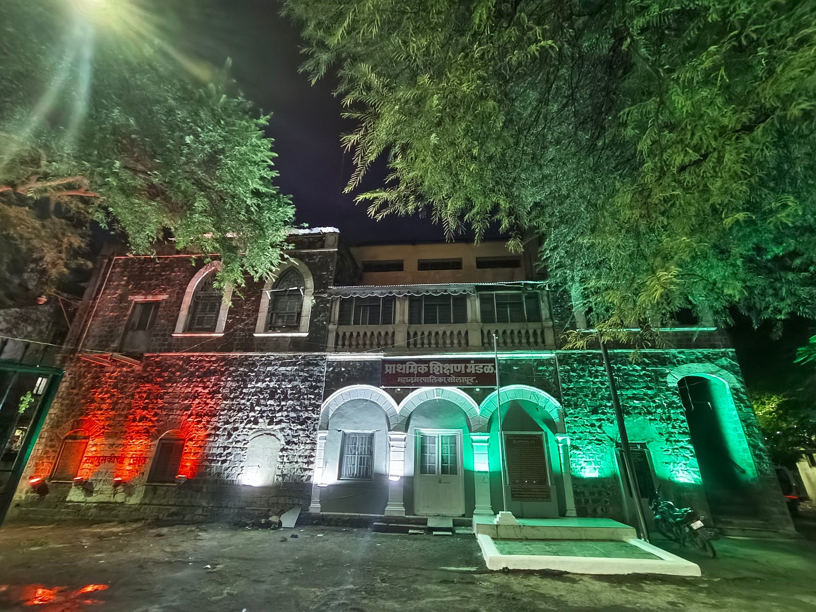 तभा फ्लॅश न्यूज/सोलापूर : पारतंत्र्यातही तिरंगा ध्वज फडकलेल्या ऐतिहासिक अशा नवी पेठेतील महापालिका प्राथमिक शिक्षण मंडळाची हेरिटेज इमारत तिरंगा विद्युत रोषणाईने उजळली. रंगरंगोटी आणि स्वच्छता कामांमुळे हा परिसर चकाचक आणि मनोहारी झाला आहे. महापालिका अतिरिक्त आयुक्त संदीप कारंजे यांच्यासह विविध विभागाच्या अधिकाऱ्यांनी यासाठी तत्परता दाखवली.