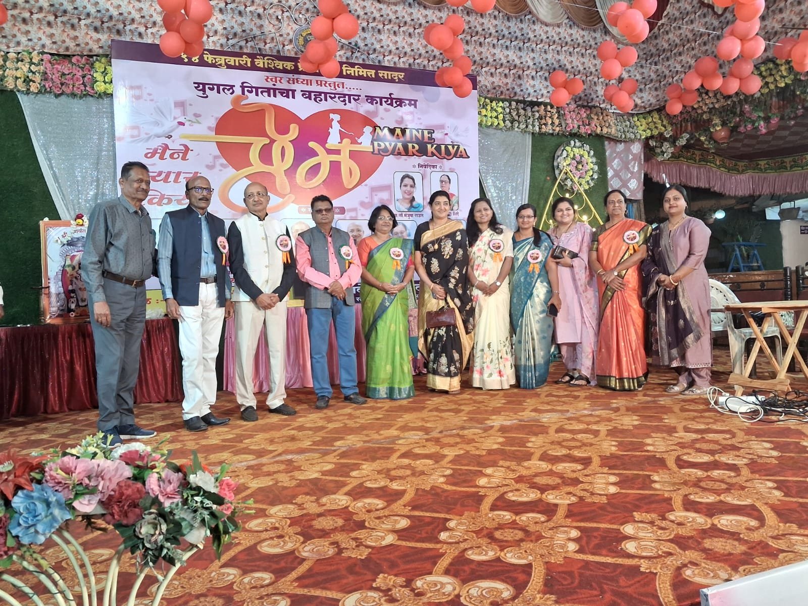 यावेळी सर्व मान्यवरांचा सन्मान तुळशीचे रोप देऊन करण्यात आले. या प्रेम गीतांच्या संगीत मैफिलीत अनेक अविट मधुर मराठी हिंदी गीते सादर झाली गायक कलावंत डॉ. मदन देगावकर, वर्षा रसाळ, सूर्यकांत वायकर,मधुसूदन चांडक,सी. ए. डॉ. तेजस्वी गपाट, गिरीजा पोळ यांनी नवी जुनी अशी सुंदर प्रेमगीते सादर केली. या कार्यक्रमाचे अतिशय प्रभावी असे निवेदन प्रा. माधुरी शिंदे, प्रा. मंजुषा राऊत,प्रा. प्रेमा राऊत यांनी केले.