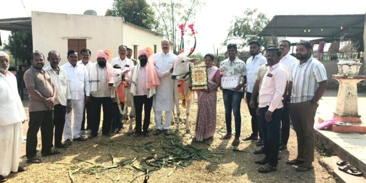 सांगोला – श्री तीर्थक्षेत्र सेवागिरी महाराज पुसेगाव (ता.खटाव) येथील यात्रेत ७८ वे हिंदकेसरी प्रदर्शन संपन्न झाले. यामध्ये सांगोला येथील हणमंत सुरवसे यांच्या प्रिया या खिलार गायीने खिलार जनावरांच्या प्रदर्शनात हिंदकेसरी किताब पटकावला.