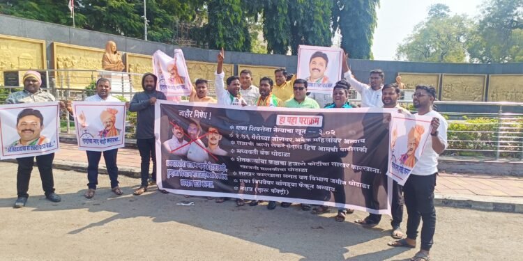 सोलापूर – मोहोळ तालुक्यातील अनगर नगरपरिषद निवडणुकीत माजी आमदार राजन पाटील त्यांचे पुत्र बाळराजे पाटील आणि अजिंक्यराणा पाटील यांनी अनगरमध्ये हुकुमशाही पद्धतीने निवडणूक लढली आणि जिंकली आहे. या निवडणुकीत भारतरत्न डॉ बाबासाहेब आंबेडकर यांच्या लोकशाहीचा खून झाला आहे. हिटलरशाहीच्या विजयानंतर उन्मादात जल्लोष करताना पाटलांनी राज्याचे उपमुख्यमंत्री अजित पवार यांचा एकेरी उल्लेख करून हिणंवले आहे. ज्या पवार कुटुंबीयांमुळे तुम्ही मोठे झालात. त्याच पवार कुटुंबियांवर शिंतोडे उडवता. धिक्कार असो धिक्कार असो अनगरकरांचा धिक्कार असो, अरे या पाटलाचे करायचं काय ? खाली डोकं वर पाय अशा तीव्र घोषणा देत राष्ट्रवादी काँग्रेस पार्टी अजित पवार गटाच्या वतीने शहराच्या हुतात्मा चौक येथे आंदोलन करण्यात आले. बॅनरवर माजी आमदार राजन पाटील, बाळराजे पाटील आणि अजिंक्य राणा पाटील यांचे पोस्टर लावून त्यावर फुली मारण्यात आली. तसेच त्यांच्या घोटाळेबाज कार्याचा लेखाजोखा बॅनरवर मांडला होता.