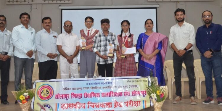 सोलापूर : शासकीय रेखा कला परीक्षेत विशेष नैपुण्य मिळवलेल्या विद्यार्थ्यांचा शैक्षणिक कलाशिक्षक संघाच्या वतीने सन्मान चिन्ह व पाचशे रुपये रोख रक्कम देऊन प्रतिवर्षी कै. इंडिकर सर माजी कलाशिक्षक यांच्या स्मरणार्थ देऊन सन्मानित करण्यात येते.