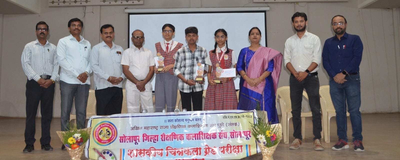 सोलापूर : शासकीय रेखा कला परीक्षेत विशेष नैपुण्य मिळवलेल्या विद्यार्थ्यांचा शैक्षणिक कलाशिक्षक संघाच्या वतीने सन्मान चिन्ह व पाचशे रुपये रोख रक्कम देऊन प्रतिवर्षी कै. इंडिकर सर माजी कलाशिक्षक यांच्या स्मरणार्थ देऊन सन्मानित करण्यात येते.