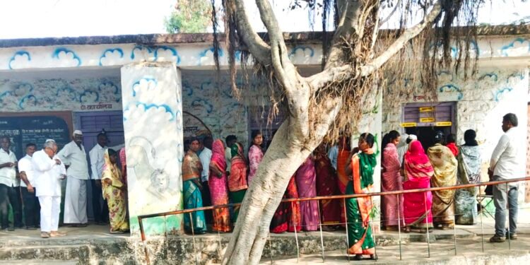 चोपडी जि.प.गट व पं.स.गणासाठी मतदान करण्यासाठी चोपडी येथील बुथवर झालेली मतदारांची गर्दी