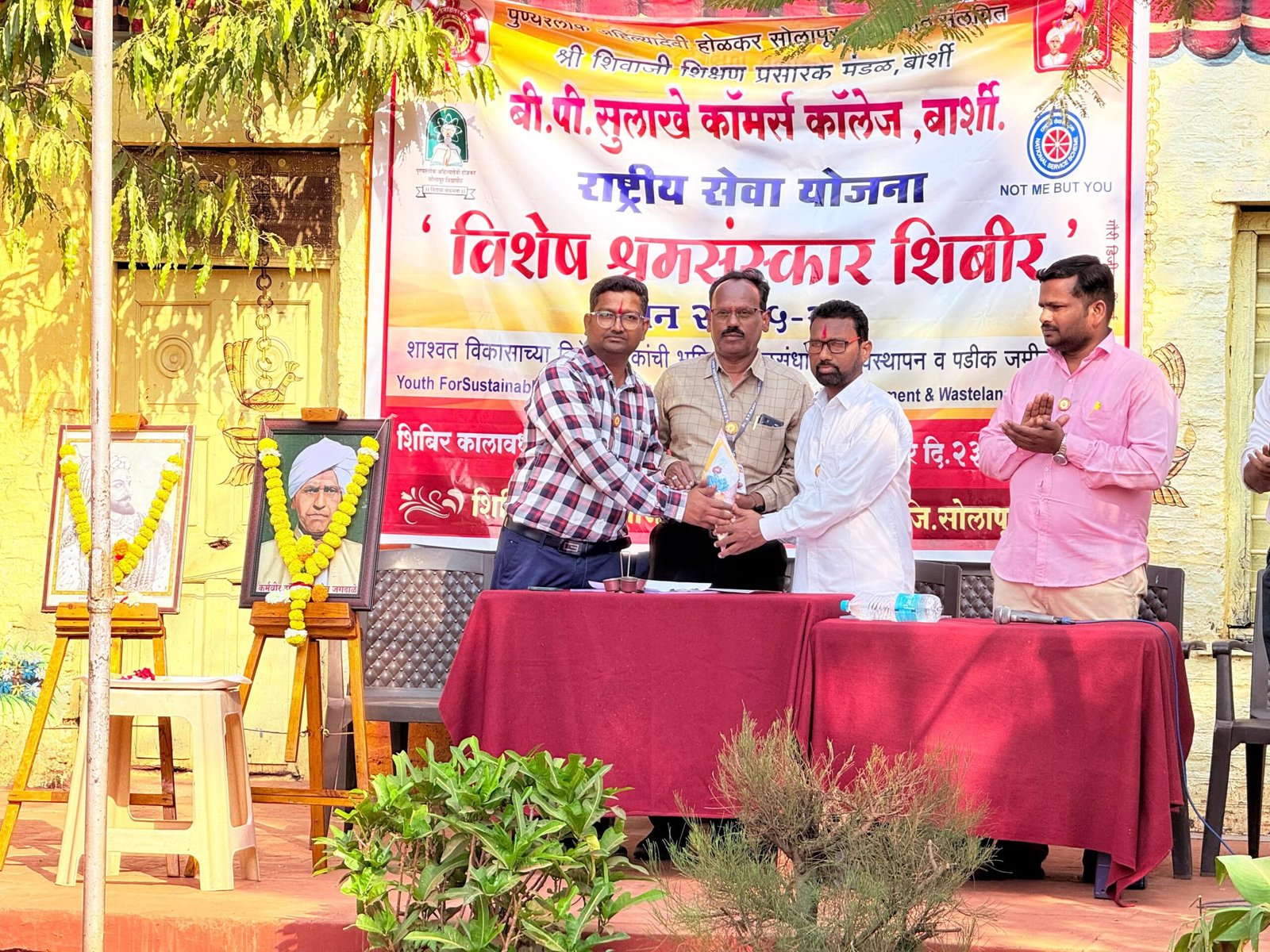 बार्शी – पुण्यश्लोक अहिल्यादेवी होळकर सोलापूर विद्यापीठ, सोलापूर व श्री शिवाजी शिक्षण प्रसारक मंडळ संचलित बी. पी. सुलाखे कॉमर्स कॉलेज, बार्शी यांच्या राष्ट्रीय सेवा योजना विभागामार्फत मौजे कासारवाडी येथे आयोजित सात दिवसीय विशेष श्रमसंस्कार निवासी शिबिराच्या दुसऱ्या दिवशी ‘जल, जंगल आणि जमीन यांचे संवर्धन ही काळाची गरज’ या विषयावर अत्यंत प्रेरणादायी व्याख्यान संपन्न झाले.