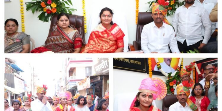 करमाळा नगरपालिकेचा पदग्रहण सोहळा मोठ्या उत्साहात पार पडला. यावेळी बोलताना सौ. सावंत म्हणाल्या की, करमाळा शहरातील जनतेने मला व करमाळा शहर विकास आघाडीला भरभरून मते देऊन निवडून दिले असून, जनतेने दाखवलेला विश्वास सार्थ ठरवण्यासाठी प्रामाणिकपणे व पारदर्शक कारभारातून विकासकामांना गती दिली जाईल.