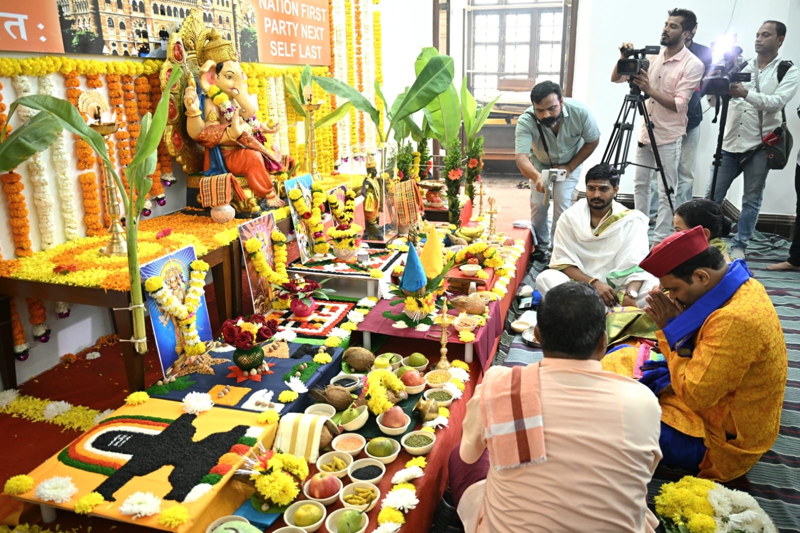 मुंबई – नवनिर्वाचित नगरसेवकांनी पारंपारिक मराठी पेहराव, कार्यालयात आकर्षक रांगोळी आणि सत्यनारायणाची पूजा अशा पद्धतीने मुंबई महानगरपालिकेत सर्वात मोठा पक्ष ठरलेल्या भाजपाने पक्ष कार्यालयाचे उद्घाटन मराठमोळ्या थाटात शुक्रवारी वाजतगाजत केले.मराठीच्या मुद्दावरून निवडणूक गाजल्याने भाजपाने मराठपण आपल्यासाठी महत्वाची असल्याचे आजच्या कृतीतून दाखवून दिले.