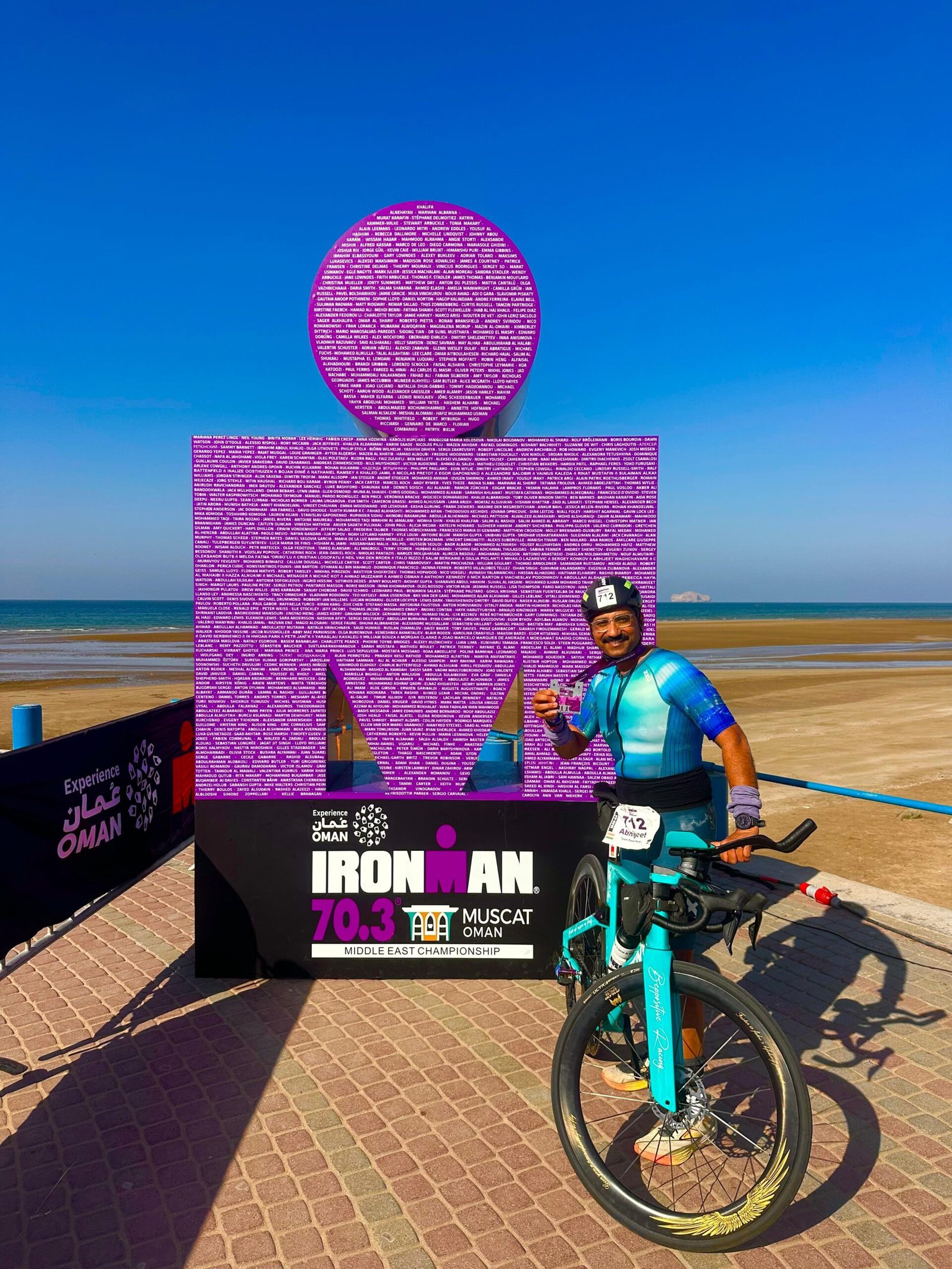 ओमान च्या अरबी समुद्रात दोन किलोमीटर स्विमिंग केल्यानंतर वाळवटीय ओमान शहरातील सुंदर अशा खड्डे विरहित रस्त्यांवरती 90 किलोमीटरचे सायकलिंग पूर्ण केले