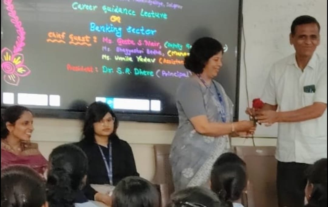 सातरस्ता मोदीखाना येथील रयत शिक्षण संस्थेच्या लक्ष्मीबाई भाऊराव पाटील महिला महाविद्यालयात बँकिंग क्षेत्रातील करिअरविषयक संधी या विषयावर मार्गदर्शनपर व्याख्यानाचे आयोजन करण्यात आले. यावेळी त्या बोलत होत्या. अध्यक्षस्थानी महाविद्यालयाचे प्राचार्य डॉ. सुरेश ढेरे होते. यावेळी व्यवस्थापक भाग्यश्री बढे, सहाय्यक व्यवस्थापक उर्मिला यादव उपस्थित होत्या.