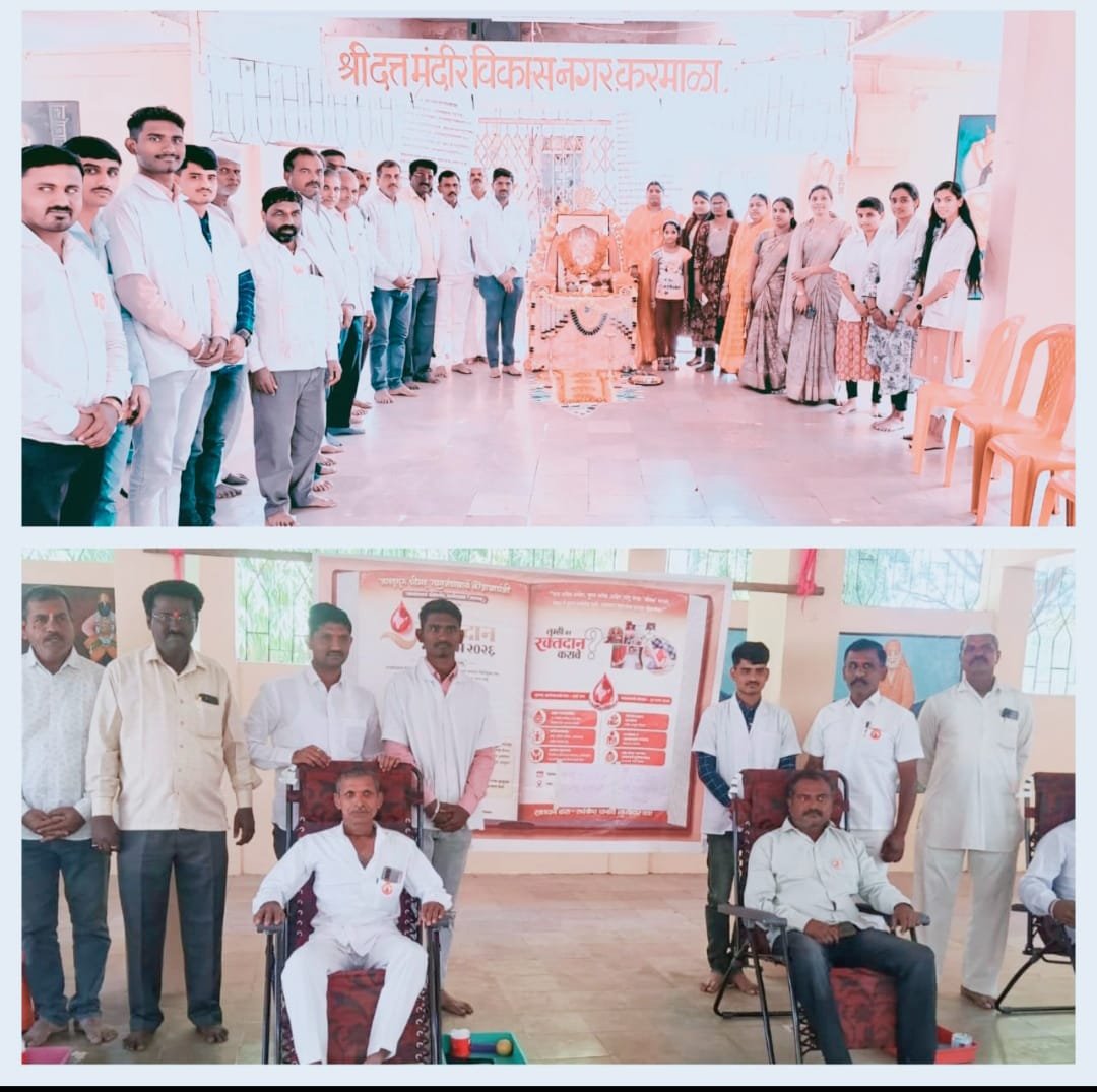 जगद्गुरु नरेंद्राचार्य महाराज भक्त सेवा मंडळ, करमाळा यांच्या वतीने शुक्रवार दि. ९ जानेवारी रोजी दत्त मंदिर, विकास नगर येथे सकाळी ९ ते सायंकाळी ६ या वेळेत रक्तदान शिबिराचे आयोजन करण्यात आले होते. कार्यक्रमाच्या सुरुवातीस जगद्गुरु नरेंद्राचार्य महाराज यांच्या प्रतिमेचे पूजन संजय सावंत यांच्या हस्ते करण्यात आले.