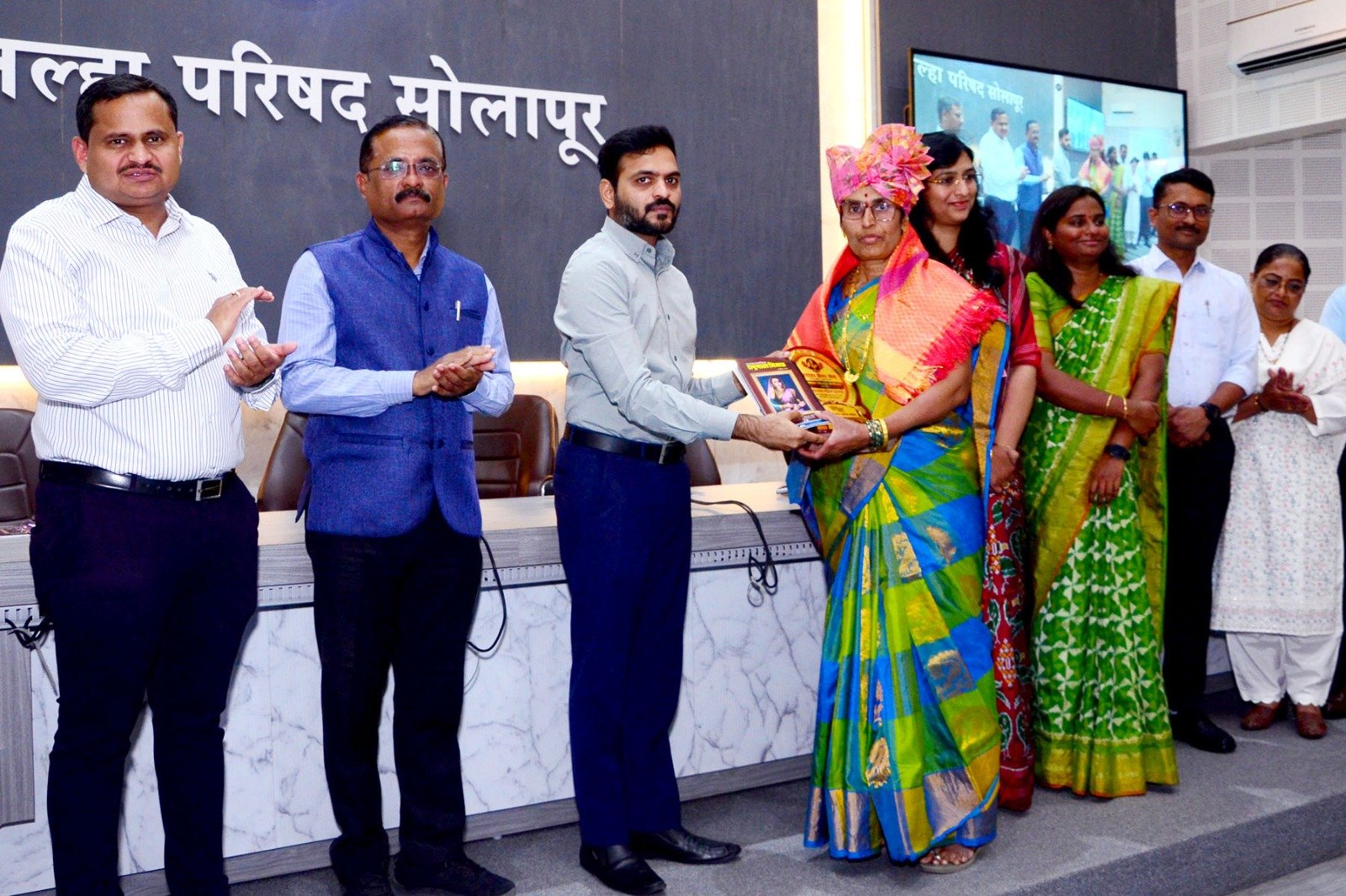 सोलापूर – मराठा सेवा संघ जिल्हा परिषद शाखेच्या वतीने राजमाता जिजाऊ जयंती निमित्त जिल्हा परिषदेच्या यशवंतराव चव्हाण सभागृहात मुख्य कार्यकारी कुलदीप जंगम यांचे शुभहस्ते व अतिरिक्त मुख्य कार्यकारी अधिकारी संदीप कोहिणकर, प्रकल्प संचालक चंद्रशेखर जगताप, उपमुख्य कार्यकारी अधिकारी स्मिता पाटील, उपमुख्य कार्यकारी अधिकारी सुर्यकांत भुजबळ, अमोल जाधव, मुख्य लेखा व वित्त अधिकारी मिनाक्षी वाकडे, शिक्षणाधिकारी कादर शेख, कृषी विकास अधिकारी हरिदास हावळे, कार्यकारी अभियंता संजय धनशेट्टी, संतोष कुलकर्णी, एच. सी सपताळे गटविकास अधिकारी मनोज राऊत,विवेक जमदाडे, रघुनाथ पांढरे, उमेश कुलकर्णी,जस्मीन शेख यांच्या प्रमुख उपस्थितीत व सर्व अधिकारी व कर्मचारी यांचे विशेष उपस्थितीत जिल्हा परिषदेत खाते प्रमुख व गट विकास अधिकारी यांच्या आईचा कर्तृत्ववान महिला म्हणून सन्मान करण्यांत आला.तसेच यावेळी जिल्हा परिषदेतील सर्व जिजाऊ, सावित्रीलेकींचा मानाचा फेटा बांधून सन्मान करण्यात आला. होते. प्रारंभी जिजाऊ मॉंसाहेब व स्वामी विवेकानंद यांच्या प्रतिमांचे उपस्थित मान्यवरांच्या हस्ते पुजन करून अभिवादन करण्यात आले. जिजाऊ वंदना अश्विनी भोसले यांनी तर राज्यगीत मोहंमद अयाज यांनी गायले. यावेळी मालती नंदकुमार कोहिणकर, उषा उत्तमराव जगताप, छाया महादेव पाटील, वनमाला महादेव भुजबळ, माया चंद्रहार जाधव, मंगला यशवंत मिरकले, कल्पना तानाजी वाकडे, सुदामती नागनाथ जगताप, प्रभावती गोविंद नवले, नंदाबाई शिवाजी हावळे, कलावती भरत धनशेट्टी,बायडाबाई सुभाष कवितके, सविता तानाजी कदम, वनिता विजय जमदाडे,चंद्रभागा भगवान पांढरे, कुसूम जनार्दन कुलकर्णी,लियाकत नैनुद्दीन शेख, सुनिता बापूराव राऊत यांचा सन्मान करण्यात आला.