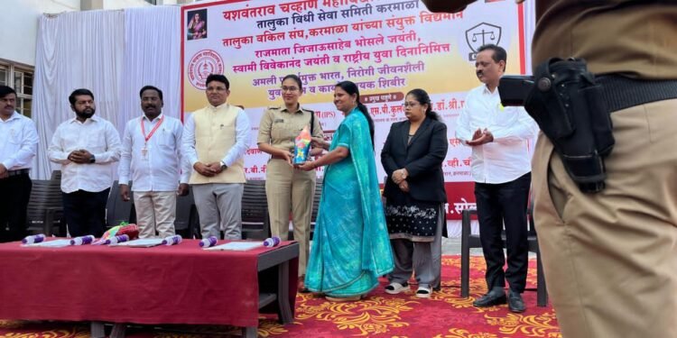 जेऊर – राष्ट्रीय युवा दिनाच्या निमित्ताने यशवंतराव चव्हाण महाविद्यालय, करमाळा, तालुका विधी सेवा समिती व तालुका वकील संघ, करमाळा यांच्या संयुक्त विद्यमाने सोमवार दि. १२ जानेवारी २०२६ रोजी सकाळी ९.१५ वाजता अमली पदार्थमुक्त भारतासाठी अमली पदार्थ जागरूकता, निरोगी जीवनशैली, युवक दिन व कायदेविषयक मार्गदर्शन शिबीर या संयुक्त कार्यक्रमाचे आयोजन करण्यात आले होते. हा कार्यक्रम उत्साहात व यशस्वीरीत्या संपन्न झाला.