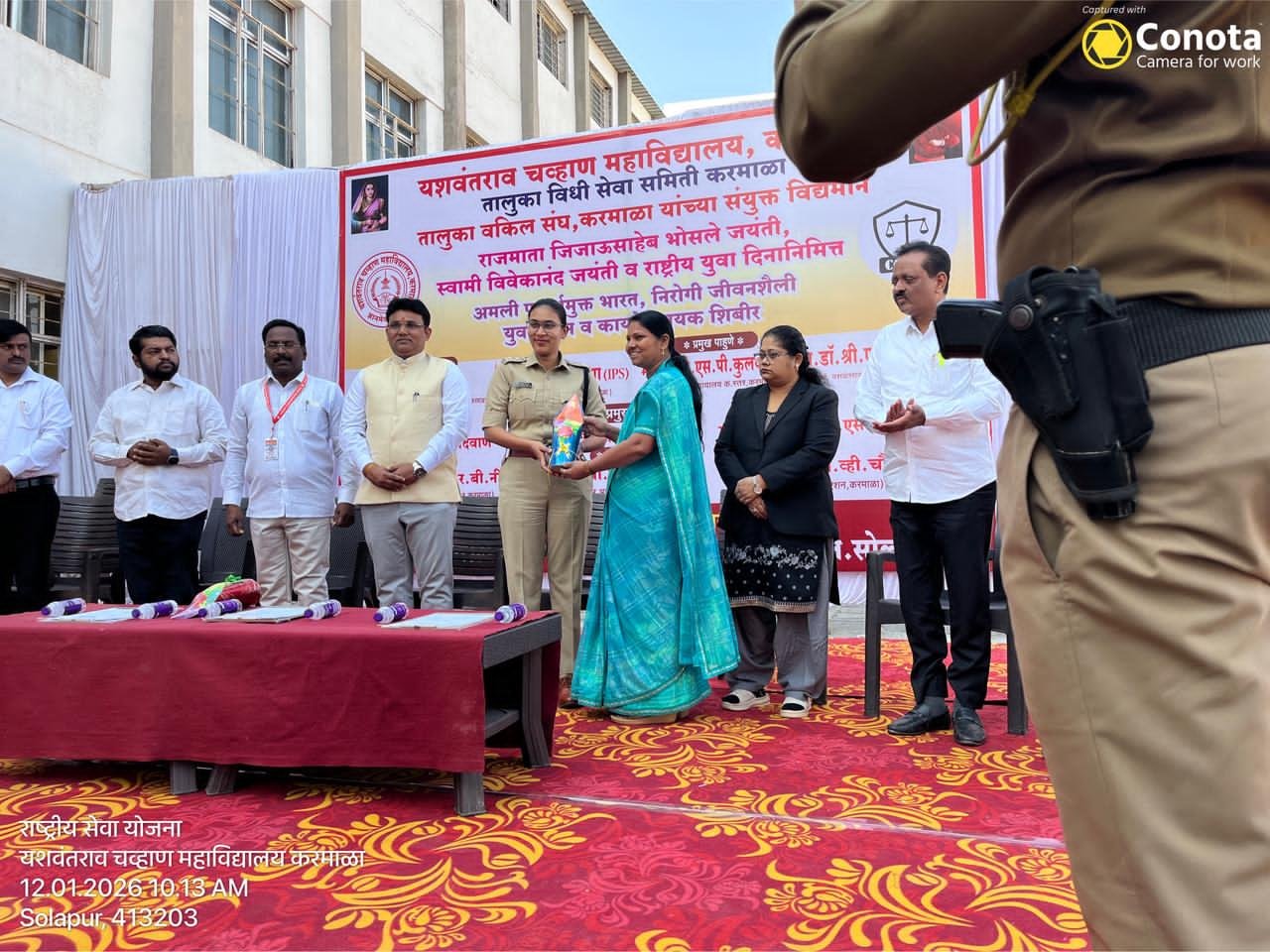 कार्यक्रमाच्या अध्यक्षस्थानी मा. श्री. एस. एम. घुगे, दिवाणी न्यायाधीश उपस्थित होते. कार्यक्रमात विशेष निमंत्रित म्हणून IPS अधिकारी कु. अंजना कृष्णा यांची विशेष उपस्थिती होती.