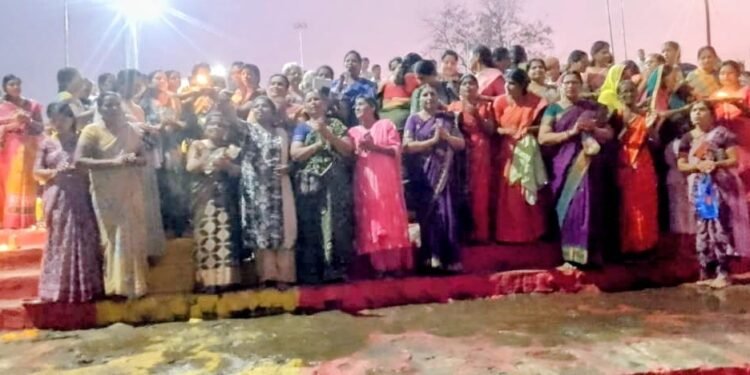 नांदेड / देगलूर : येथील स्वच्छतेचा जागर ग्रूपतर्फे त्रिपुरारी पौर्णिमा निमित्त येथील लेंडी नदीच्या विसर्जन घाटावर ०५ नोव्हेंबर रोजी सायंकाळी ६ वाजता भव्य दीपोत्सव व संगीत सोहळा संपन्न झाला. यावेळी सुंदर रांगोळ्या, दिव्यांची आरास, रोषणाई आणि संगीताच्या मैफलीने वातावरण आनंदमय झाले होते.