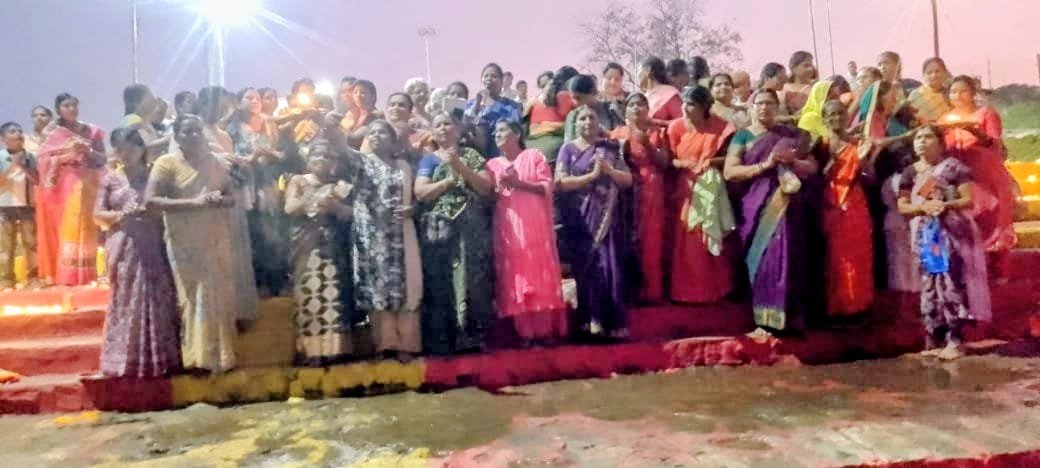 यावेळी शहरातील अनेक महिला व पुरुष नागरिक सहकुटुंब उपस्थित राहून दिव्यांची आरास केली. दीपोत्सवाचा हा तिसरा वर्ष होता. दिवे लावल्यानंतर सामूहिक रित्या नदी पूजन व आरती करण्यात आली. या कार्यक्रमात हजारो महिला व पुरुषांनी सहभाग घेतला. सुंदर रांगोळ्या व फुलांनी दिव्यांची आरास व रोषणाई करण्यात आली.