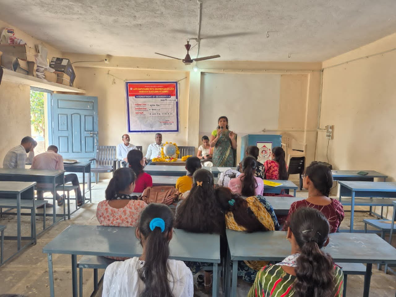कार्यक्रमासाठी प्रमुख पाहुणे म्हणून लाभलेले भूगोल विभागाचे प्रा. डॉ. पलवी कनाडे मडम यांनी विद्यार्थ्यांना भूगोल दिनाचे महत्व, नैसर्गिक घटकाचे मानवी जीवनामध्ये महत्व, त्याच बरोबर विद्यार्थांना हसवण्याबारोबरच जीवनाचे एक निश्चित ध्येय ठेवून त्यानुषंगाने विद्यार्थांनी अभ्यास आणि प्रयत्न करावेत असे मार्गदर्शन केले.