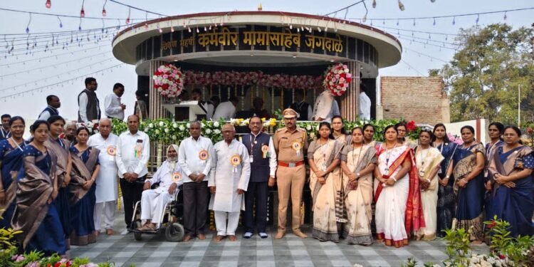 वाशी – कर्मवीर डॉ.मामासाहेब जगदाळे यांची १२३ वी जयंती महाविद्यालयामध्ये उत्साहात साजरी करण्यात आली.यावेळी प्रमुख पाहुणे वाशी पोलीस स्टेशन चे पोलीस निरीक्षक श्री.शंकरराव शिंदे,श्री.श्रीकांत थोबडे (माजी जनरल मॅनेजर महिंद्रा अँड महिंद्रा मुंबई),महाविद्यालय विकास समितीचे सदस्य श्री.मछिंद्र तात्या कवडे, श्री.भाई भगवानराव उंदरे(माजी सरपंच वाशी),प्राचार्य डॉ.अशोक कदम,पत्रकार प्रा.शहाजी चेडे,प्रा.श्रीराम ढेपे व प्रा.विश्वास चौधरी उपस्थित होते.सर्वप्रथम मान्यवरांच्या शुभहस्ते मामांच्या पुतळ्याचे पूजन करण्यात आले.