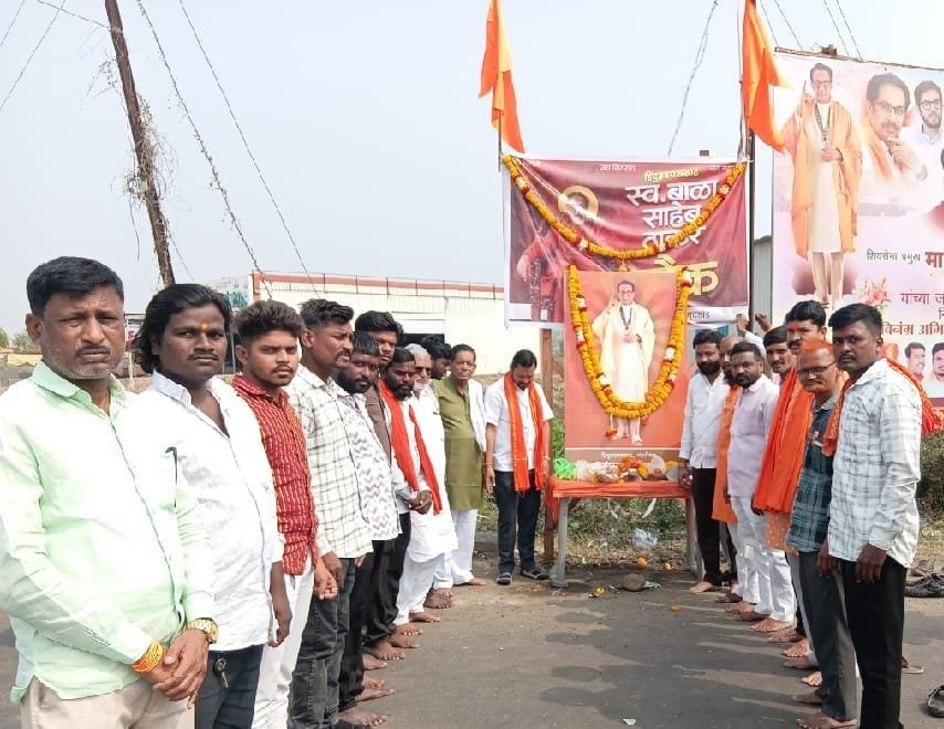 शहरातील स्वर्गीय बाळासाहेब ठाकरे चौक यांच्या नियोजित प्रतिमेच्या ठिकाणी प्रतिमेस पुष्पहार अर्पण करत अभिवादन करण्यात आले.