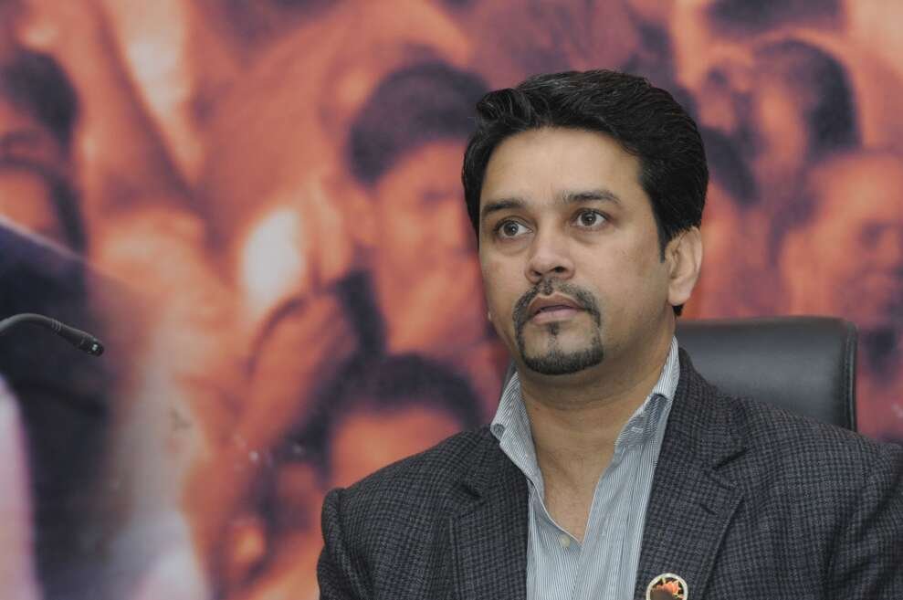 NEW DELHI, INDIA JANUARY 07: Anurag Thakur during the launch of "BJYM Campus Ambassador" programme aimed at connecting with youth.(Photo by Yasbant Negi/India Today Group/Getty Images)