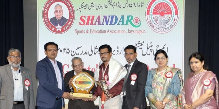 जयसिंगपूर – सोलापूरच्या सोशल हायस्कूल अँड ज्युनिअर कॉलेज ऑफ सायन्स येथील विज्ञान शिक्षक आणि उर्दूतील विज्ञान लेखक जुनेद अब्दुल कय्युम शेख यांना त्यांच्या उल्लेखनीय शैक्षणिक आणि साहित्यिक कार्यासाठी “एम. जी. पटेल नॅशनल बेस्ट टीचर अवॉर्ड – 2025” ने सन्मानित करण्यात आले. या समारंभात त्यांना ट्रॉफी, मेडल, प्रमाणपत्र, शाल आणि पुष्पगुच्छ देऊन गौरविण्यात आले.