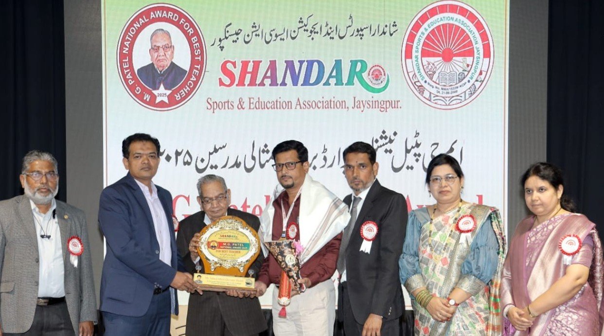 जयसिंगपूर – सोलापूरच्या सोशल हायस्कूल अँड ज्युनिअर कॉलेज ऑफ सायन्स येथील विज्ञान शिक्षक आणि उर्दूतील विज्ञान लेखक जुनेद अब्दुल कय्युम शेख यांना त्यांच्या उल्लेखनीय शैक्षणिक आणि साहित्यिक कार्यासाठी “एम. जी. पटेल नॅशनल बेस्ट टीचर अवॉर्ड – 2025” ने सन्मानित करण्यात आले. या समारंभात त्यांना ट्रॉफी, मेडल, प्रमाणपत्र, शाल आणि पुष्पगुच्छ देऊन गौरविण्यात आले.