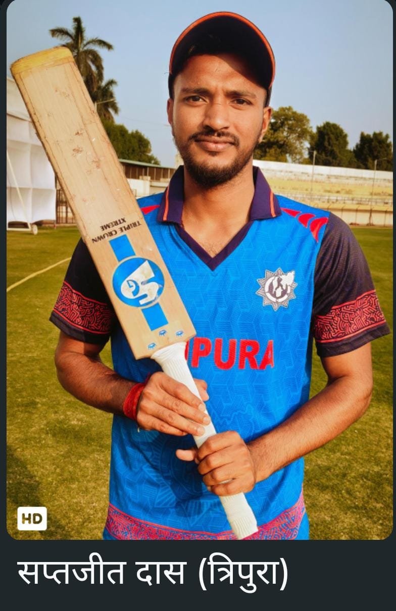फलंदाजी साठी उत्तम खेळपट्टी असल्याचे पाहून पाहुण्या त्रिपुरा संघाने सकाळी प्रथम फलंदाजी करण्याचा निर्णय घेतला आणि सलामीचे फलंदाज दीपजोय देब व तन्मोय दास यांनी अर्धशतकी सलामी दिली. 22 व्या षटकात शुभम मेड ने जोडी फोडताना देब (24 धावा 69 चेंडू) याला पायचीत केले. त्यानंतर आलेल्या सप्तजीत दास ने चेंडूगणिक धावा करण्याचे सूत्र अवलंबिले व त्याचे सोबत सलामीवीर तन्मोय ने 102 चेंडू मध्ये 3-3 चौकार, षटकार लगावत अर्धशतक साजरे केले आणि दास जोडगोळीने दुसऱ्या गड्यासाठी 52 धावांची भागीदारी रचली. जेवणाला खेळ थांबण्याच्या शेवटच्या षटकात स्वराज चव्हाण ने तन्मोय याला दिग्विजय पाटील करवी झेलबाद करत जोडी फोडली तेंव्हा 119 धावा (35.3 षटके) झालेल्या.