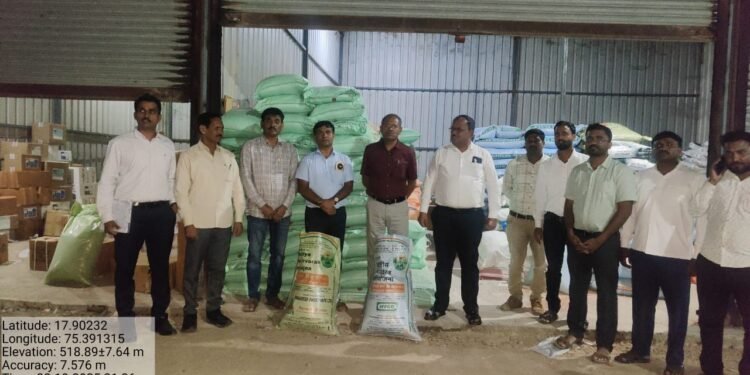 सोलापूर – कृषी विभागाच्या जिल्हास्तरीय भरारी पथकास मिळालेल्या गोपनीय माहितीवरून जिल्हा अधीक्षक कृषी अधिकारी, सोलापूर यांचे कार्यालयाकडील आदेशानुसार दि.30 नोव्हेंबर, 2025 रोजी दत्तात्रय गावसाने, विभागीय कृषी सहसंचालक, पुणे विभाग,पुणे व मा.शुक्राचार्य भोसले, जिल्हा अधिक्षक,कृषि अधिकारी, सोलापूर यांचे मार्गदर्शनाखाली भरारी पथकाचे अध्यक्ष हरिदास हावळे, कृषि विकास अधिकारी, जिल्हा परिषद,सोलापूर , सदस्य सचिव बाळू बागल साहेब, जिल्हा गुणवत्ता नियंत्रण, निरीक्षक, सोलापूर;, मोहीम अधिकारी, अजय वगरे, जिल्हा कृषी अधिकारी सागर बारावकर, शरद गावडे साहेब, कृषी अधिकारी (गु.नि.),माढा, पथक सदस्य प्रविण झांबरे, कृषी अधिकारी (गुनि) मोहोळ व विलास मिस्किन, कृषी अधिकारी (गुनि) बार्शी, ईफको कंपनीचे प्रतिनिधी रवींद्र मोरे यांच्या उपस्थितीत कारवाई करण्यात आली. यामध्ये मे. रेवणसिद्ध ऍग्रो एजन्सी,मोडनिंबचे प्रो.प्रा. रेवण तनपुरे यांचे गोडाऊन मध्ये बनावट इफको आणि पी.पी.एल कंपनीच्या बॅग मधील 10:26:26 व 18:46:00 (DAP) या रासायनिक बनावट खताचा साठा आढळून आला. सदर खताचा पुरवठादार रामलिंग माळी, रा. बैरागवाडी व उत्पादक दीपक सस्ते, रा.ढवळेवाडी ता.फलटण यांचे विरुद्ध राष्ट्रीयकृत इफको व पीपीएल सारख्या खत उत्पादन करणाऱ्या कंपनीच्या नावे विनापरवाना खते उत्पादन व विक्री करणे, साठवणुकी बाबतचा परवाना न घेणे, शासनाची व शेतकऱ्यांची दिशाभूल व फसवणूक केल्यामुळे खत नियंत्रण आदेश- 1985 तसेच अत्यावश्यक वस्तू अधिनियम- 1955 मधील विहित तरतुदींचे उल्लंघन केलेले आहे .