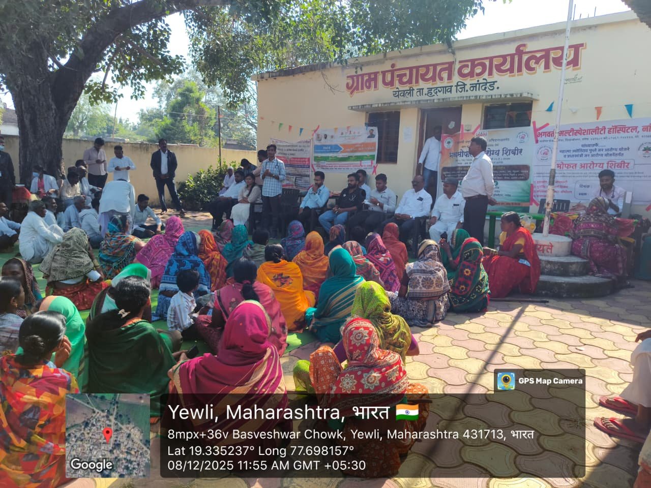 हदगाव / नांदेड – मुख्यमंत्री समृद्ध ग्रामपंचायत अभियानांतर्गत ग्रामपंचायत येवली तालुका हदगाव येथे दि.८.१२.२०२५ रोजी आरोग्य शिबिराचे आयोजन करण्यात आले होते. या शिबिरास नांदेड येथील रेणुकाई मल्टीस्पेशालिस्ट हॉस्पिटल नांदेड, भगवती मल्टीस्पेशालिस्ट हॉस्पिटल, ,सहयोग मल्टीस्पेशलिस्ट हॉस्पिटल, नांदेड क्रिटिकल केअर हॉस्पिटल, क्षितिज मल्टी स्पेशालिस्ट हॉस्पिटल, अपेक्षा मल्टी स्पेशालिस्ट हॉस्पिटल नांदेड यांनी येवली तालुका हदगाव येथे आरोग्य शिबिराचे कॅम्प आयोजित केला होता एवढ्या मोठ्या प्रमाणात पहिल्यांदाच ग्रामीण भागात आरोग्य शिबिराचे आयोजन झाल्यामुळे येवली परिसरातील आंदवाडी ,येवली तांडा ,कोका तांडा, आष्टी ,उमरी, वायपना, पिंपळगाव ,राजवाडी ,घोगरी या गावातील गरजू लोकांनी या शिबिरामध्ये येऊन उपचार घेतल्यामुळे तसेच गंभीर आजार असलेल्या लोकांना नांदेड येथे पुढील शस्त्रक्रिया व ऑपरेशन करण्यात येणार आहेत त्यामुळे गरीब व गरजू लोकांना या शिबिराचा लाभ झाल्यामुळे त्यांच्या चेहऱ्यावर आनंदाचे भाव दिसू लागले.