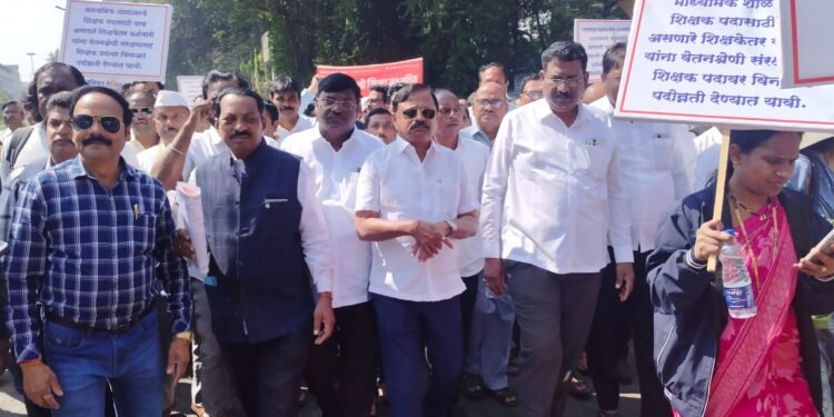 सोलापूर : २० वर्षे संघर्ष करून शासनाला शिक्षकेतर कर्मचारी भरतीचा अध्यादेश काढण्यात आले तरी अद्याप भरती प्रक्रिया सुरू झाली नाही. त्यामुळे बदलापूर सारख्या घटना घडत आहेत. म्हणून शासनाने तात्काळ शिक्षकेतर कर्मचारी भरती प्रक्रिया सुरू करावी.चतुर्थश्रेणी कर्मचाऱ्यांचे २४ वर्षानंतरच्या लाभाच्या अनुषंगाने पूर्वीप्रमाणे S5 मध्येच वेतन निश्चिती करण्यात यावी. नवीन सुधारित आश्वासित प्रगती योजनाबाबत निर्णय घ्यावा. शिक्षकेतर कर्मचाऱ्यांना कर्मचाऱ्यांना विनाअट वेतनश्रेणीत पदोन्नती मिळावी, शिक्षकेतर कर्मचारी अतिरिक्त झाल्यानंतर त्यांच्या पदात वेतनश्रेणीत कोणताही बदल करू नये या मागण्यांसाठी महाराष्ट्र राज्य माध्यमिक शाळा शिक्षकेतर संघटना महामंडळातर्फे सोमवारी पुण्यात शनिवार वाडा ते शिक्षण आयुक्त कार्यालय दरम्यान विराट मोर्चा काढण्यात आला. शिक्षकेतर कर्मचारी संघटनेचे नेते शिवाजी खांडेकर यांच्या नेतृत्वाखाली राज्यातील विविध जिल्ह्यातील कर्मचाऱ्यांनी हजारोंच्या संख्येने या मोर्चात उत्स्फूर्तपणे सहभाग घेतला.