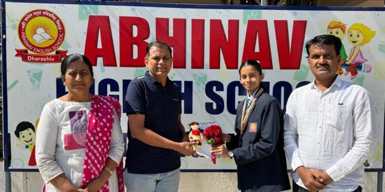 धाराशिव – इटानगर, अरुणाचल प्रदेश येथे झालेल्या 69 व्या राष्ट्रीय शालेय तायक्वांदो स्पर्धेमधील कांस्यपदक विजेती खेळाडू संस्कृती कपाळे हिचा आज अभिनव इंग्लिश स्कूल येथे संस्थेचे संचालक श्री सतीश मोदानी ,प्राचार्य सौ प्रतिभा मोदानी यांच्या हस्ते सत्कार करण्यात आला. स्कूल गेम फेडरेशन ऑफ इंडिया च्या वतीने आयोजित राष्ट्रीय शालेय तायक्वांदो स्पर्धेमध्ये सतरा वर्ष मुलींच्या 32 किलो खालील वजनी गटामधून संस्कृतीने महाराष्ट्राचे प्रतिनिधित्व केले होते.