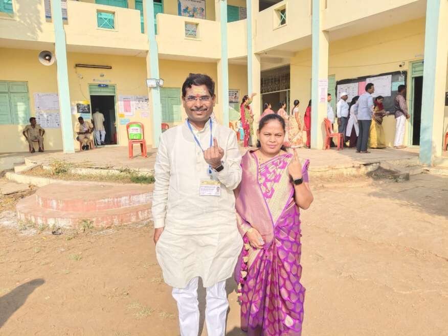 यांनी सपत्नीक भारती विद्यापीठ शैक्षणिक संकुल, विजापूर रोड सोलापूर येथे मतदानाचा हक्क बजावला .