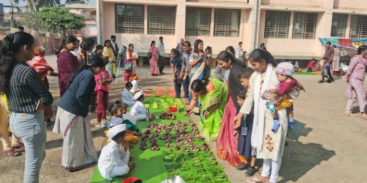 सोलापूर – प्रत्येक बालकांचा पूर्णतः विकास होण्यासाठी शाळेत विविध उपक्रम राबवित असतो. या मोबाईल व ऑनलाइनच्या जमान्यात काही गोष्टी मुलांना प्रत्यक्ष कृतीतून समजावणे दिवसेंदिवस गरजेचे होत चालले आहे. अशा खूप सार्या गोष्टी आहेत ज्यांचा अनुभव मुलांना प्रत्यक्षपणे मिळत नाही, यावर प्रसिद्ध लेखक व. पु. काळे उपहासाने म्हणतात की, “मुलांना डोंगर,दर्या,नदी,नाले, खोरे प्रत्यक्ष पाहण्यास घेऊन जा नाहीतर उद्या ते स्पीड ब्रेकरलाच ‘डोंगर ‘समजतील”. वाक्य ऐकताना हस्यास्पद वाटत असले तरी ही सत्यस्थिती आहे. याचाच सारासार विचार करून व मुलांचे व्यवहारिक ज्ञान, भाषण कौशल्य वाढविण्यासाठी, भाजी मंडईची प्रत्यक्ष मांडणी करण्यात आली.